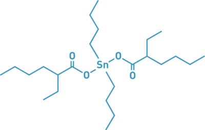 Dibutylzinn-bis-ethylhexanoat ist eine zinnorganische Verbindung: ein festes, weißes Pulver, welches bei Raumtemperatur stabil und in Mineralölen, Ketonen und Xylenen lösbar ist. Staubbildung sollte vermieden werden.